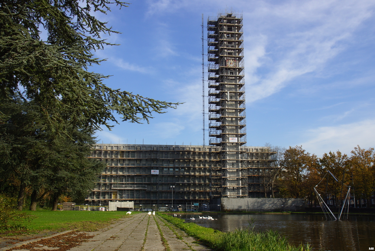 Vertrek Door de almaar groeiende organisatie werd ook dit stadhuis al snel te klein bevonden. Dit heeft er in 2002 toe geleid dat men het gebouw besloot om te ruilen voor een aantal etages in kantoortoren Hoogvoorde aan het Bogaardplein. Om het kostenplaatje van deze verhuizing te dekken werd een prijsvraag uitgeschreven voor herontwikkeling van het stadhuisterrein. De prijs ging naar het plan 'Garden of Delight' van architectenbureau Van Heerden & Partners. In dit plan zou het stadhuis worden afgebroken om plaats te maken voor twee woontorens van 110 en 75 meter hoog. Een nogal bizarre hoogte voor deze locatie. Omwonenden zagen deze hoogtes niet zitten en wisten de bouw uiteindelijk via de rechter tegen te houden. Terugkeer Kantoortoren Hoogvoorde bleek niet de droomlocatie zoals verwacht. Voor een representatieve ontvangst was dit gebouw niet geschikt. Nu het ambtelijke apparaat weer wat is ingekrompen is minder ruimte nodig, dus het oude leegstaande stadhuis lijkt opeens heel geschikt als onderkomen. Dat de gemeente nu toch al tonnen aan jaarlijkse onderhoudskosten aan het pand kwijt is maakt deze keuze wat sneller gemaakt. Sinds een paar jaar bereidt de gemeente Rijswijk zich dus al voor op een terugkeer. Om het pand opnieuw geschikt te maken heeft de gemeente architectenbureau Inbo in de arm genomen. Dit bureau heeft een plan uitgewerkt voor een multifunctioneel 'Huis van de Stad'. Naast de gemeente zal het pand ruimte bieden aan maatschappelijke organisaties en horeca. De oude binnentuin krijgt een glazen dak en wordt zo een centrale ontmoetingsruimte midden in het gebouw. Ook wordt de gevel schoongemaakt en waar nodig hersteld en krijgt het pand nieuwe kozijnen die beter isoleren. Op het dak worden zonnepanelen aangelegd, zodat het gebouw deels in eigen energie kan voorzien. Zoals wel vaker bij dit soort verbouwingen zijn er nog wel wat hobbels op de weg. Doordat nu meer asbest is aangetroffen dan men aanvankelijk dacht gaat de verbouwing langer duren en meer kosten dan verwacht. Daarnaast heeft de vondst van een slechtvalkennest in de klokkentoren gezorgd voor de nodige vertraging. Volgens de huidige planning kunnen de ambtenaren in 2023 verhuizen naar dit vernieuwde stadhuis. Bronnen - Kwakernaak, A. (2018). Iconen in Rijswijk. Het stadhuis aan de Generaal Spoorlaan. - Rijswijk krijgt een stadhuis. Het Vaderland (26-02-1954) - Het Nieuwe Instituut: Buijtenen, Jacobus Cornelis van - Gemeente Rijswijk: Raadsvoorstel 13-10-2020. Huis van de Stad Gepubliceerd in Rijswijks Dagblad: 18-11-2020
