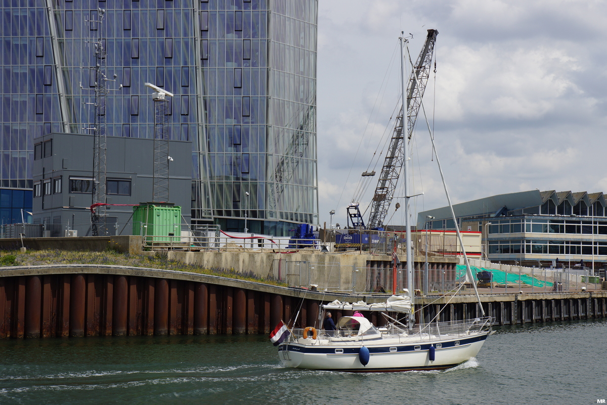 De nieuwe bediencentrale op het Noordelijk Havenhoofd is vrijwel klaar voor oplevering. Aanvankelijk zou de opbouw wit zijn, maar deze is nu bekleed met bronskleurige panelen. Dat schittert wel lekker in de najaarszon.