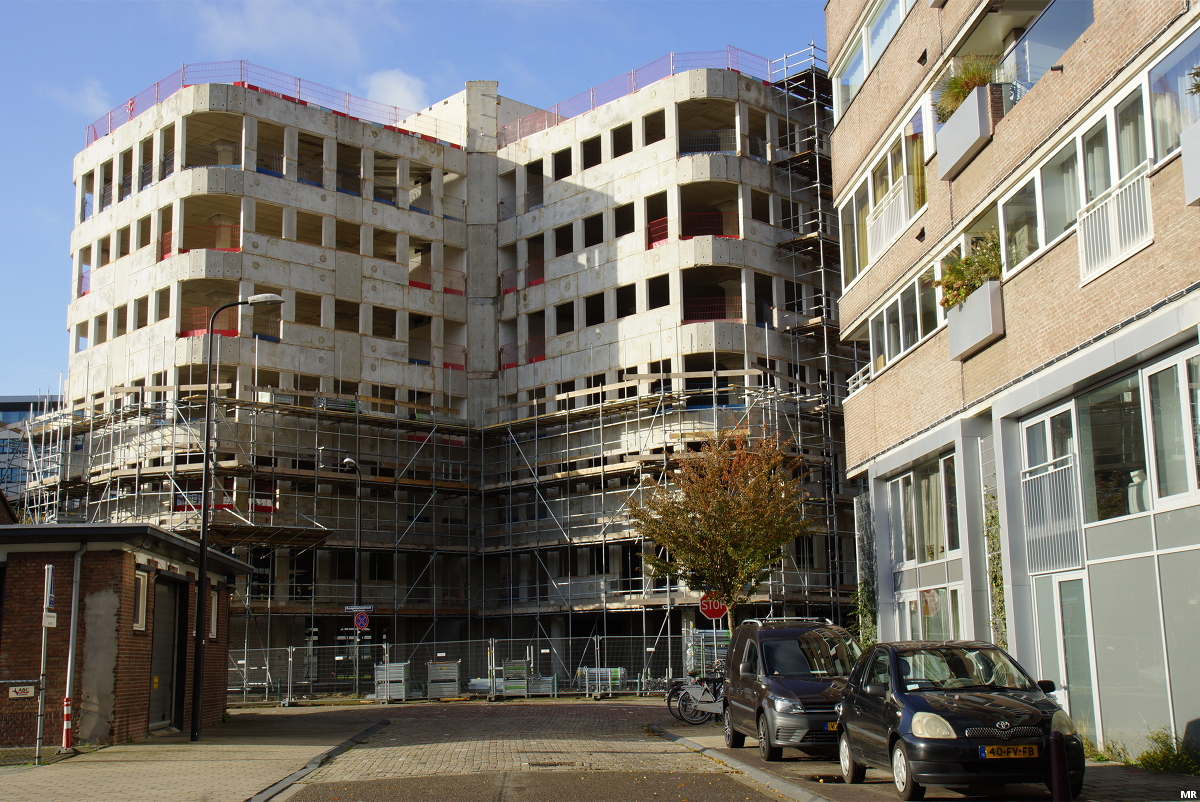 Aan de buitenkant is nog niet zoveel te zien, maar binnen is sloper Knijnenburg inmiddels begonnen met sloopwerkzaamheden aan dit kantoorgebouw aan de Burgemeester Elsenlaan. In het gebouw komen 142 woningen.