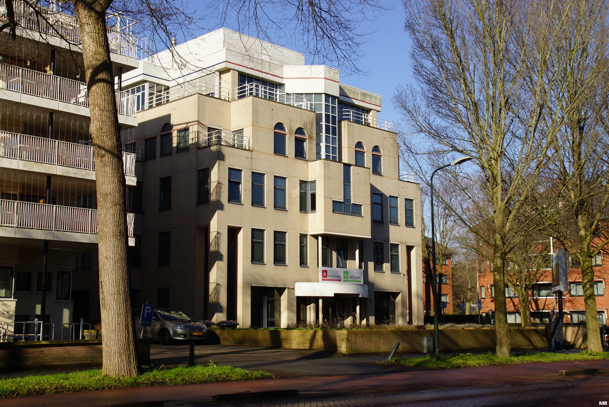 Aankomende sloop van kantoorvilla uit 1989 aan de Scheveningseweg. Op deze locatie zal nadien urban villa Parador verrijzen. De nieuwbouw wordt wederom 5 lagen hoog en wordt gekenmerkt door een veelvoud aan bogen.