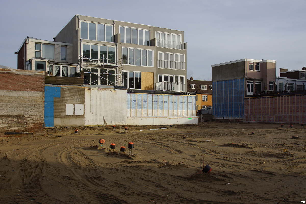 Verdichtingsproject tussen de Treilerweg en Korbootstraat in Scheveningen Haven. Nu de heipalen de grond in zijn gebracht zullen hier binnenkort de eerste bovengrondse gebouwdelen zichtbaar worden. Uiteindelijk komen hier 75 woningen en 3 commerciele ruimten, verdeeld over 5 bouwlagen.