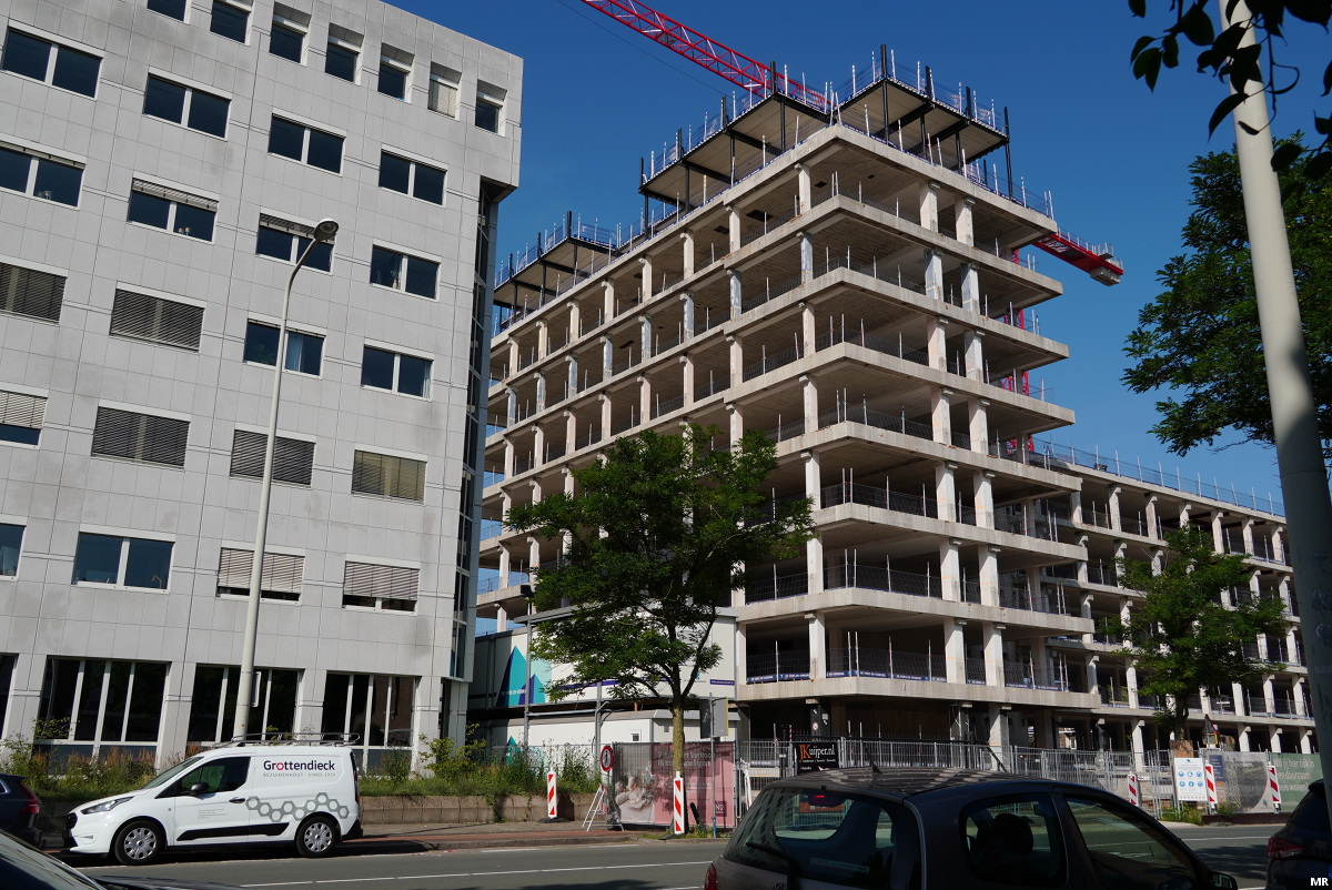 Aan de Laan van Nieuw Oost-Indie is de verbouwing van het voormalige kantoor van verzekeraar Meeus gestart. In het gebouw komen 205 appartementen, terwijl op het parkeerterrein aan de Carpentierstraat nog eens 16 eengezinswoningen worden gerealiseerd.