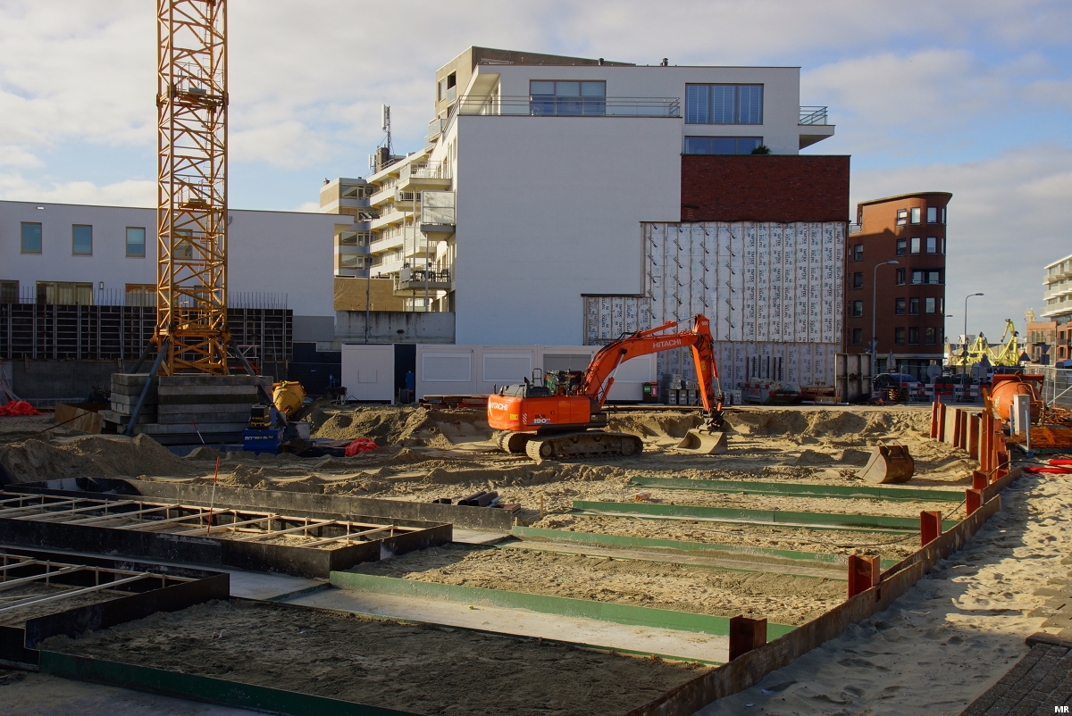 Aan de Zeesluisweg is men gestart met de bouw van een appartementencomplex met bedrijfsruimten in de plint. Het gebouw volgt de kromming in de weg en zal direct aansluiten op de blinde gevels van de omliggende bebouwing.
