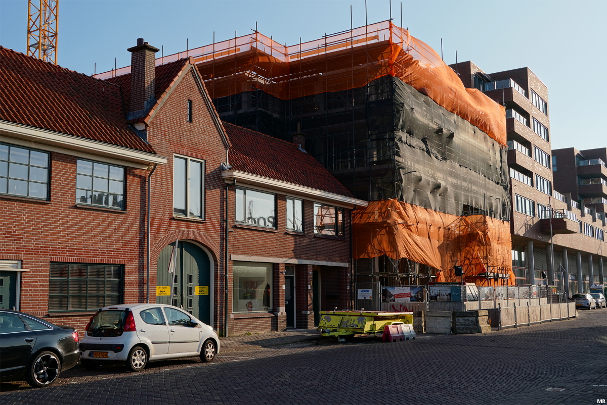 Naast de monumentale visrokerij aan de Dr. Lelykade wordt gewerkt aan woongebouw Beaufort. Nog twee etages erbij en het gebouw is op hoogte.
