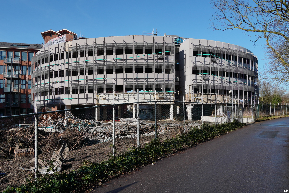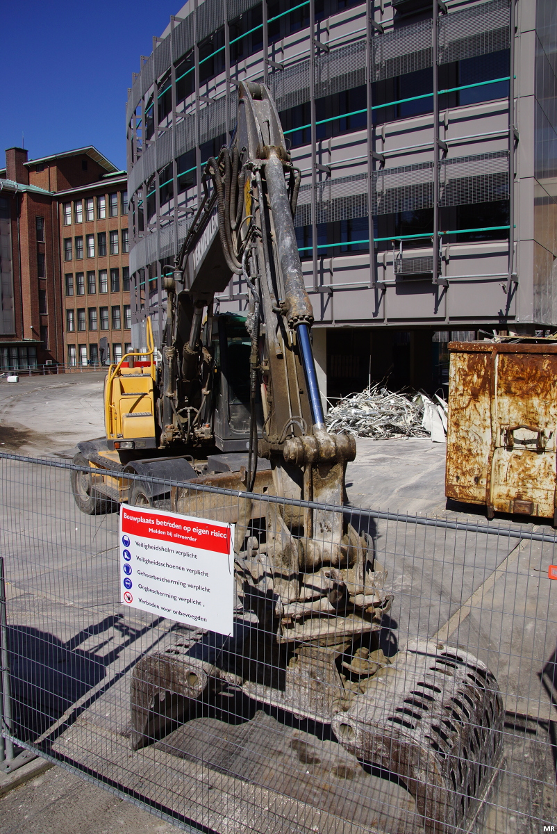 Laatste blik op de uitbreiding van het voormalig ministerie van Verkeer en Waterstaat (ofwel KLM-gebouw) aan de Plesmanweg. De sloopgrijper staat al klaar.