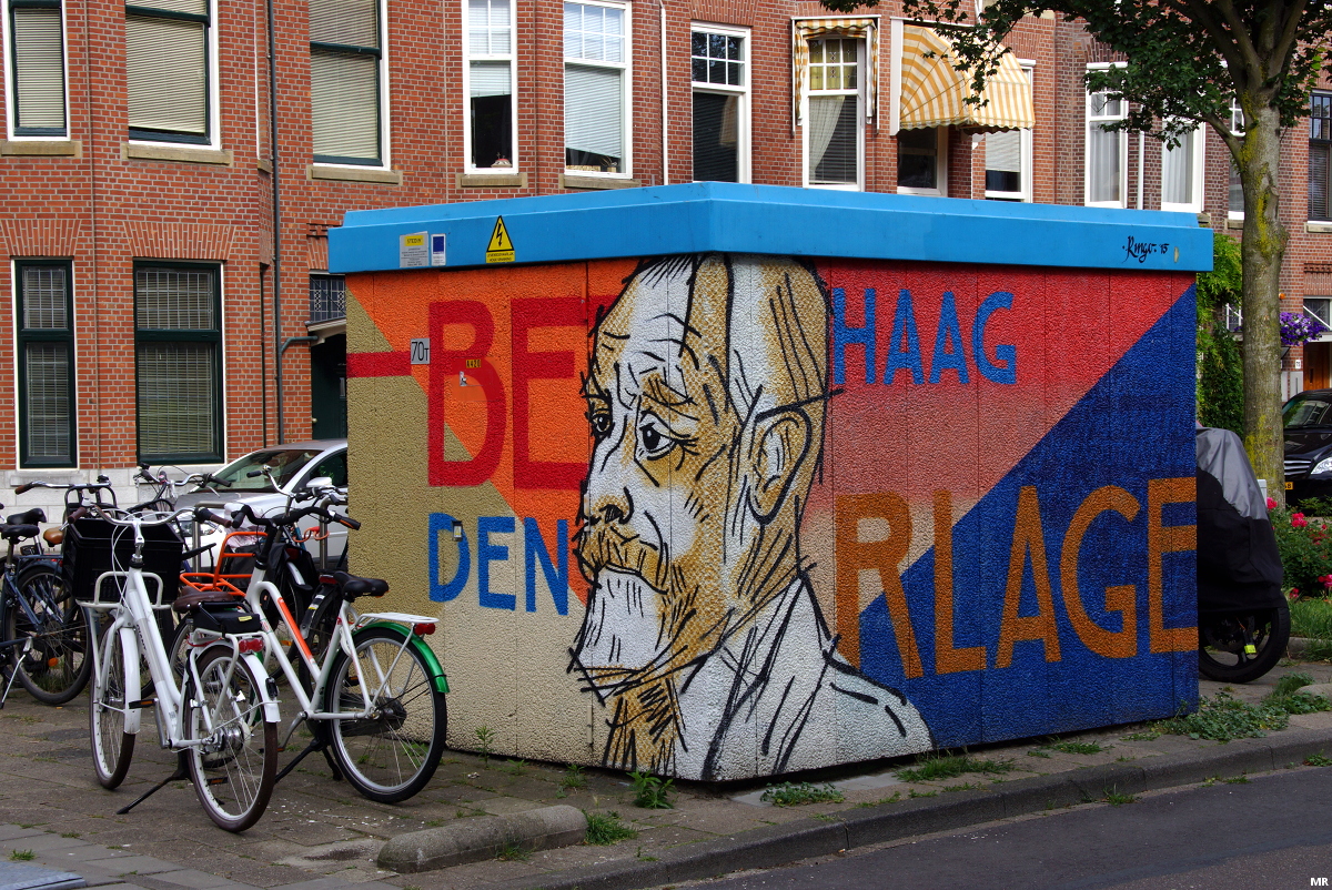 Portret Berlage op trafohuisje aan de Ieplaan in Bomenbuurt. In 2015 aangebracht door kunstenaar Ringo Mollinger.