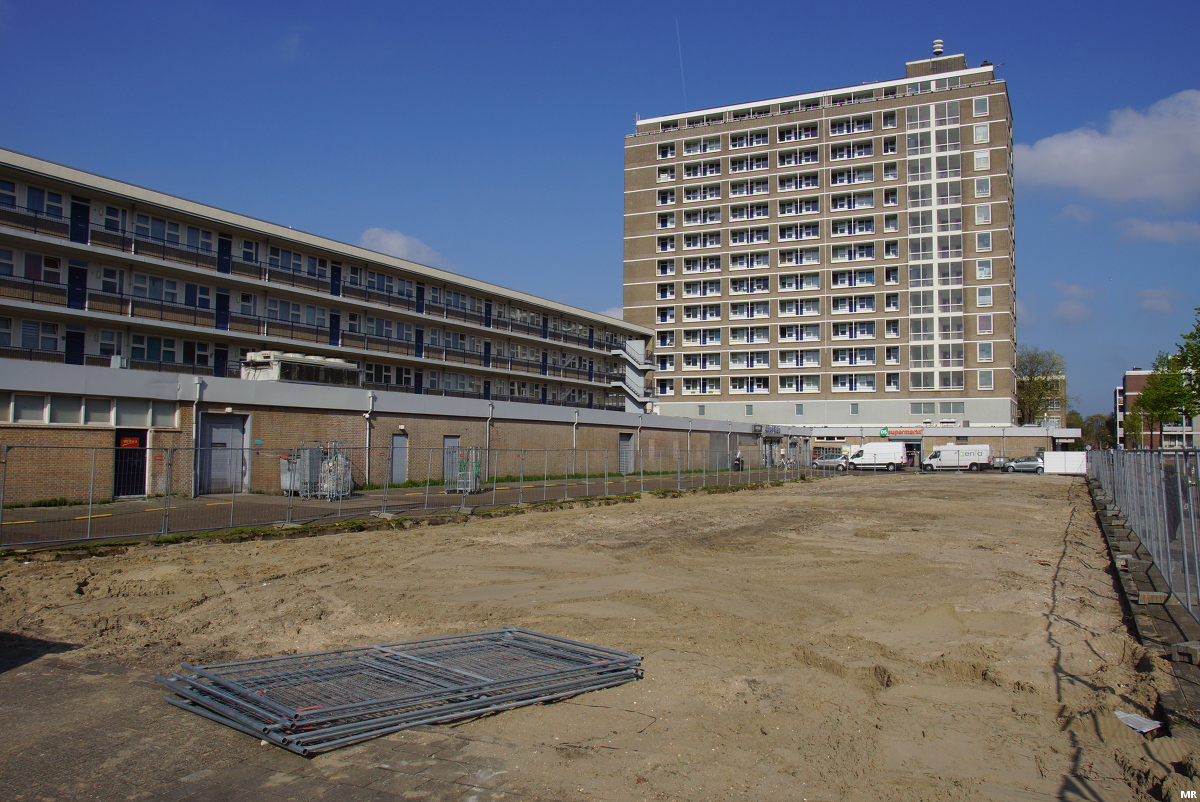 Aan de achterkant van winkelcentrum De Stede is eergisteren het startsein gegeven voor de bouw van 82 appartementen. De appartementen worden verdeeld over twee blokken aan de Vrederustlaan (50) en Hazenrade (32).
