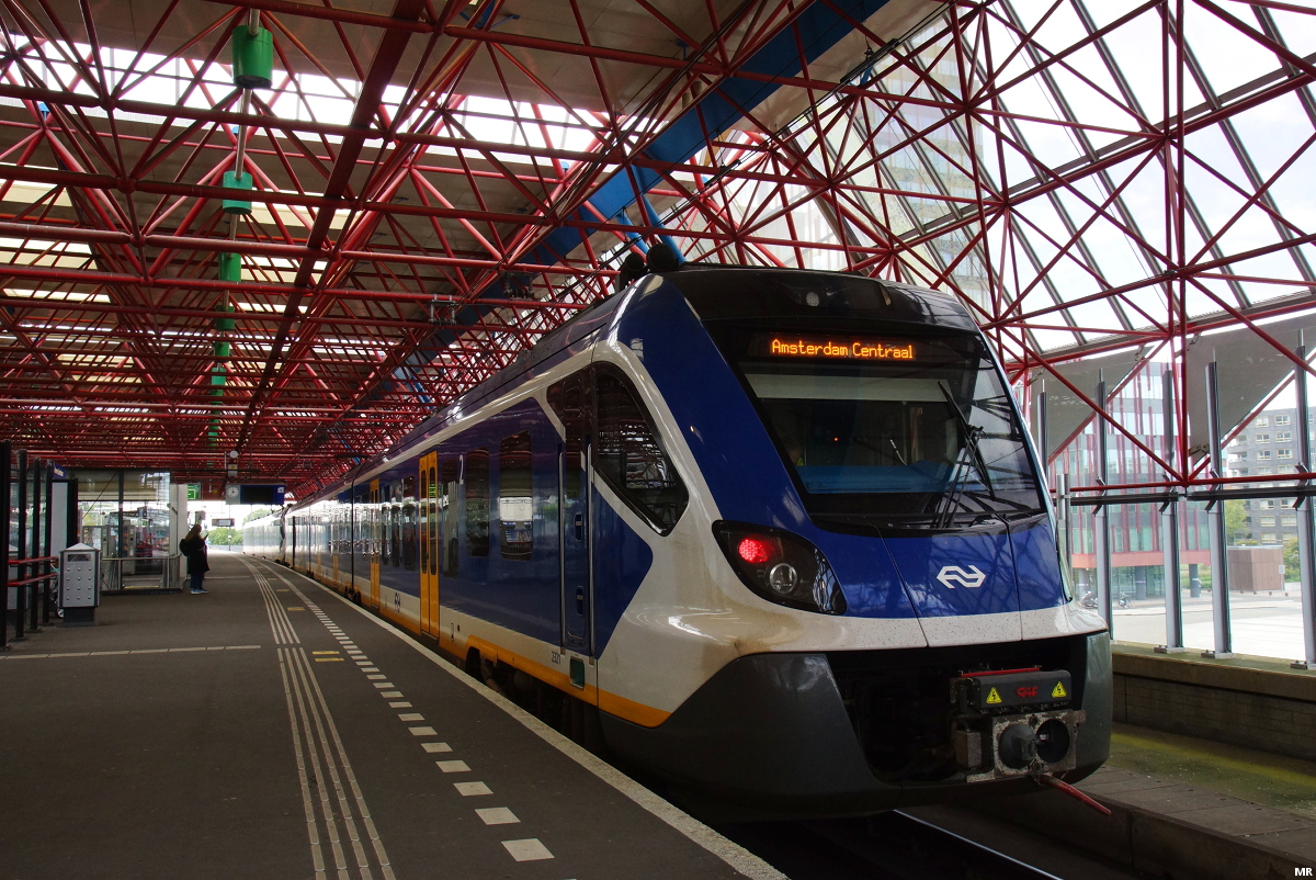 2. Station Almere Centrum valt op vanwege zijn rode spaceframe dat een groot deel van de perrons overdekt. Het station werd in 1987 tegelijkertijd met stations Almere Muziekwijk en Almere Buiten geopend. Alle drie de stations zijn ontworpen door de toenmalige huisarchitect van de NS Peter Kilsdonk. Almere Centraal is hiervan verreweg het uitbundigst. Later ontwierp Kilsdonk ook het station van Lelystad in een vergelijkbare stijl. Dat station heeft inmiddels een monumentenstatus gekregen. Station Almere Centrum verdient zo'n status ook wel.
