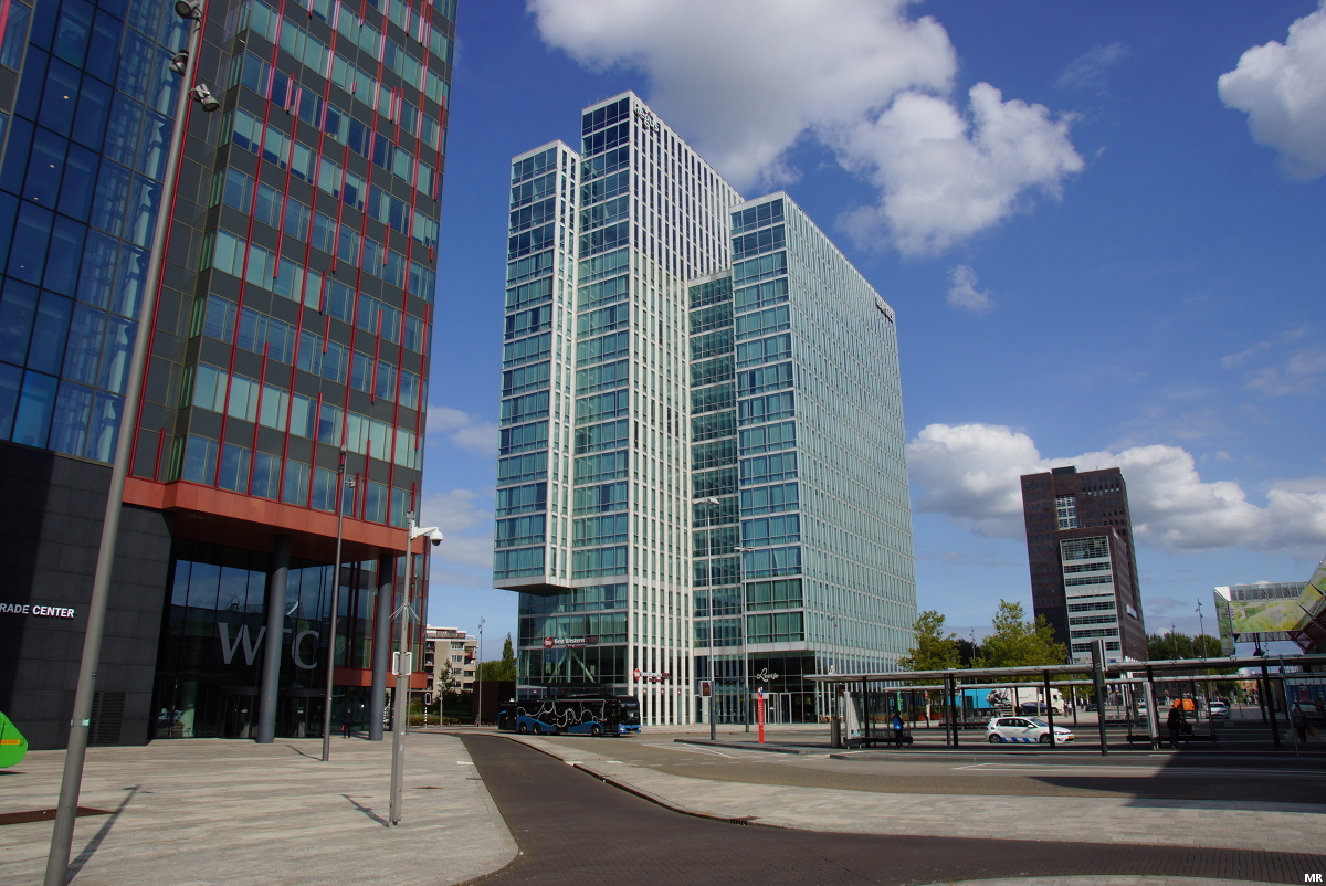 3. Het 120 meter hoge WTC Carlton van architectenbureau Dam & Partners bepaalt sinds 2010 de skyline van Almere. Het gebouw is een stuk hoger dan de twee naburige torens Martinez en Eurotoren, beide 80 meter. Vanwege zijn eenzame hoogte fungeert het gebouw als een ware landmark voor de binnenstad. De knalrode verticale lijnen sluiten goed aan bij de dakconstructie van het naastgelegen station, al is het rood in zowel het station als de toren inmiddels enorm verbleekt.
