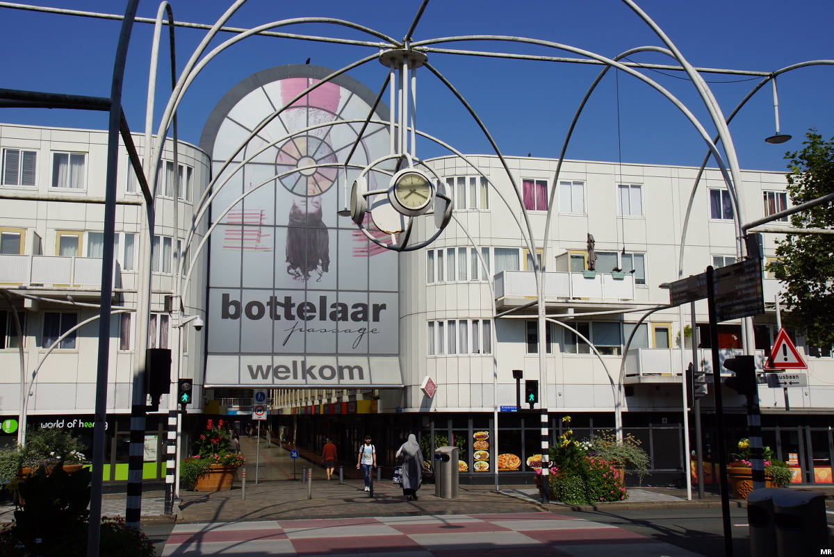 16. In het verlengde van de Zoetelaarpassage ligt de Bottelaarpassage. Om hier te komen moet je oversteken over de Wagenmakerbaan. Door dit frivole kunstwerk met stadsklok heeft men getracht beide passages met elkaar te verbinden. Al met al een ultieme jaren '80 omgeving.