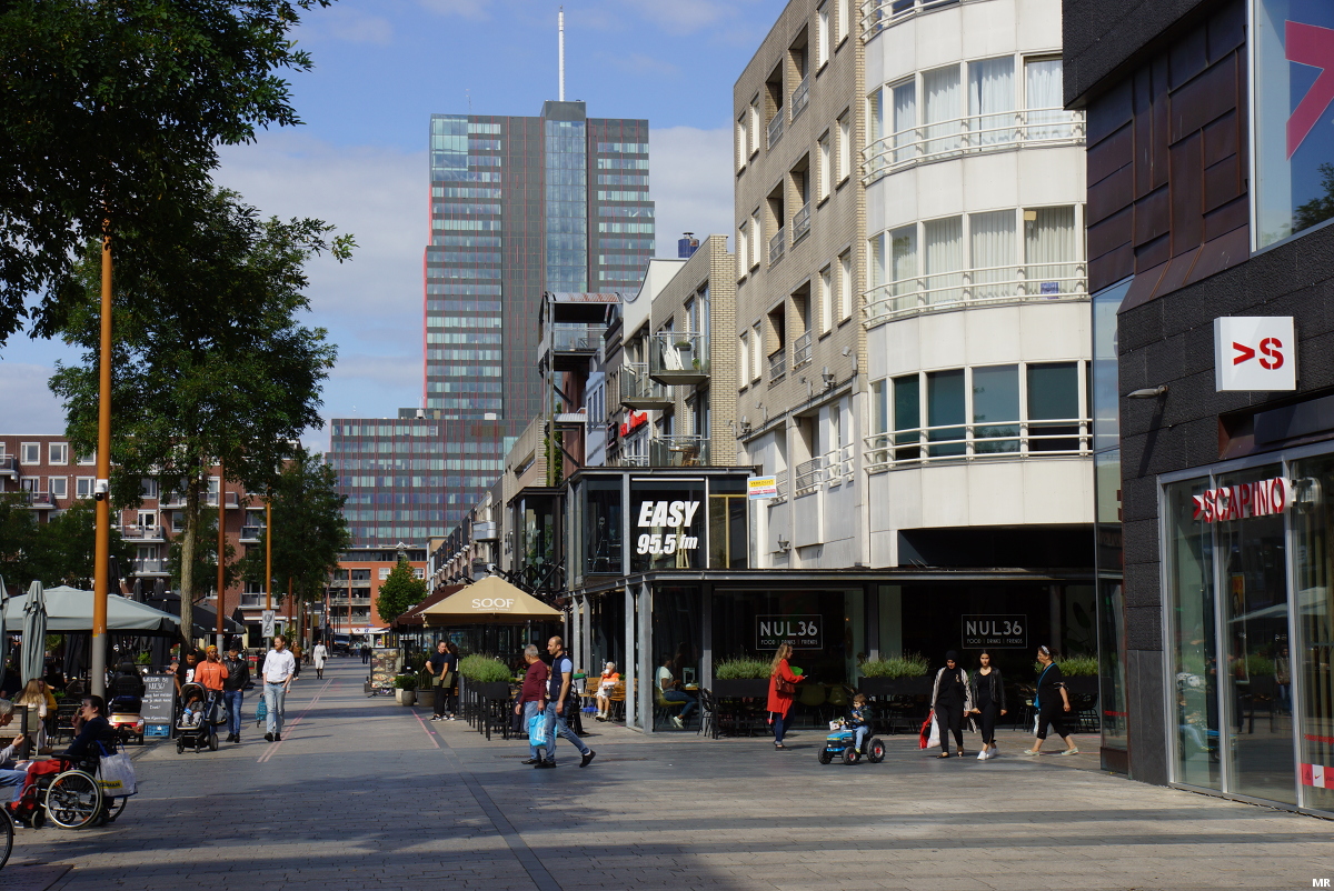6. De Stationsstraat met op de achtergrond kantoorgebouw Martinez.