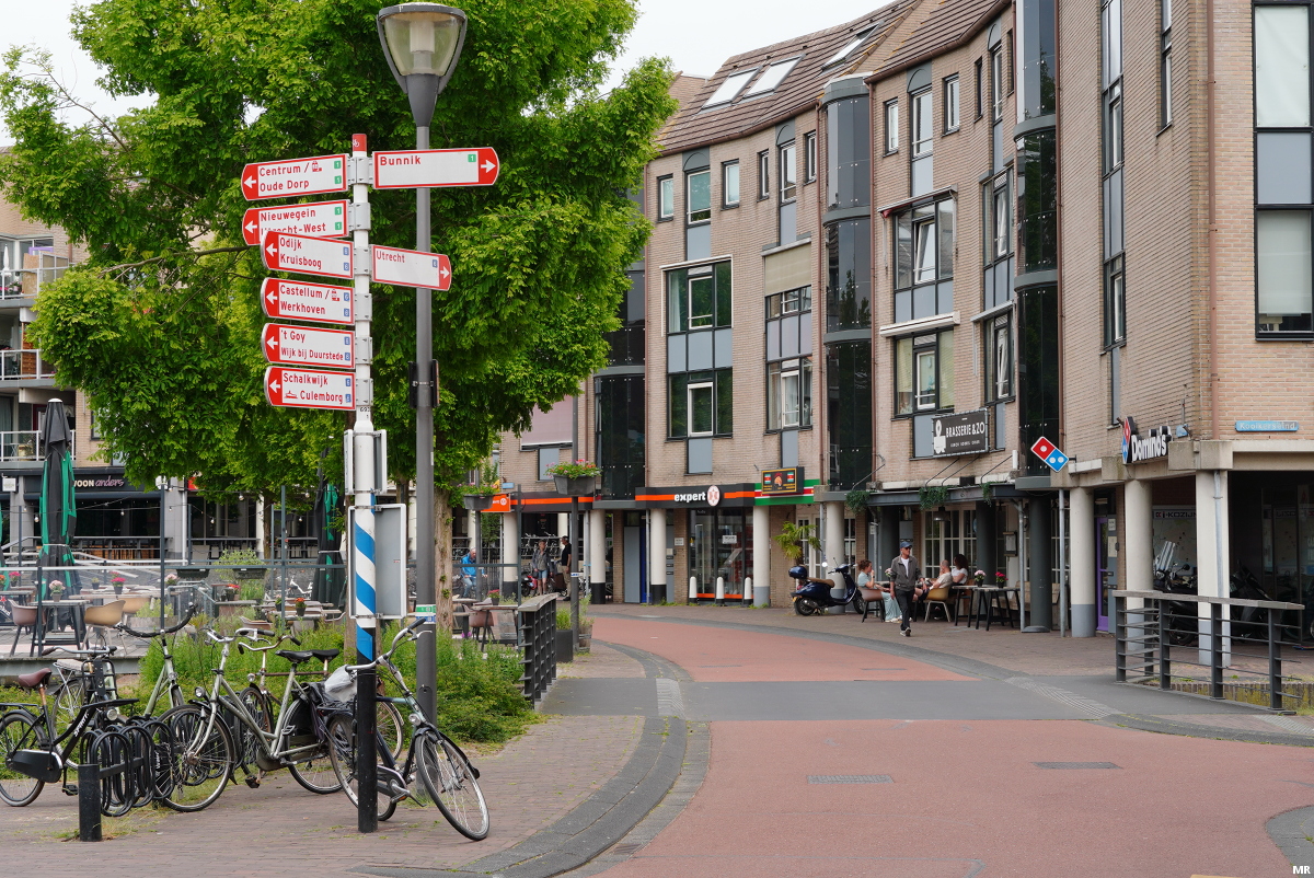 21. Het winkelcentrum van Castellum. Op het plein voor de winkels is een parkeerplaats voor fietsen ingericht.