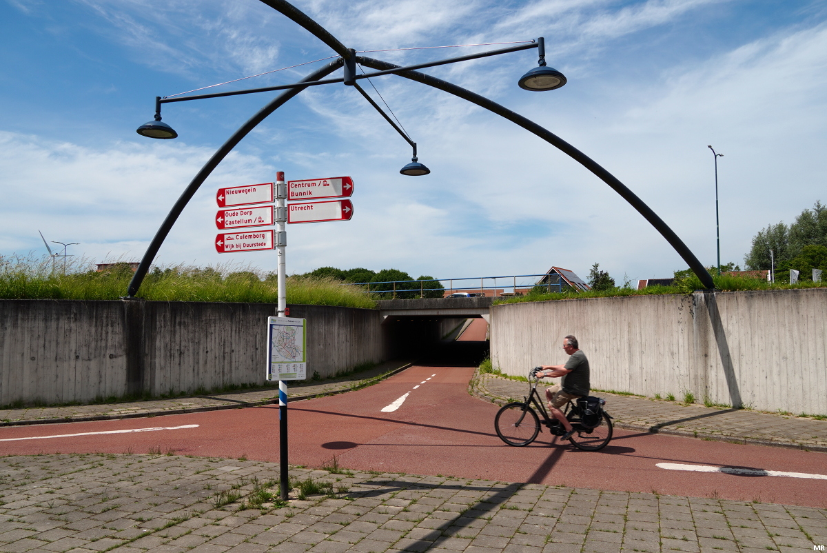 10. Bij kruispunten tussen fietspaden en hoofdwegen wordt zoveel mogelijk gebruik gemaakt van tunnels en viaducten. Op 21 locaties ligt een fietstunnel onder de weg door en op 5 plekken passeer je de hoofdweg via een viaduct. Alleen in het noorden van Houten bij bedrijventerrein Doornkade heb je een oversteekplaats op maaiveldniveau over de Utrechtseweg.