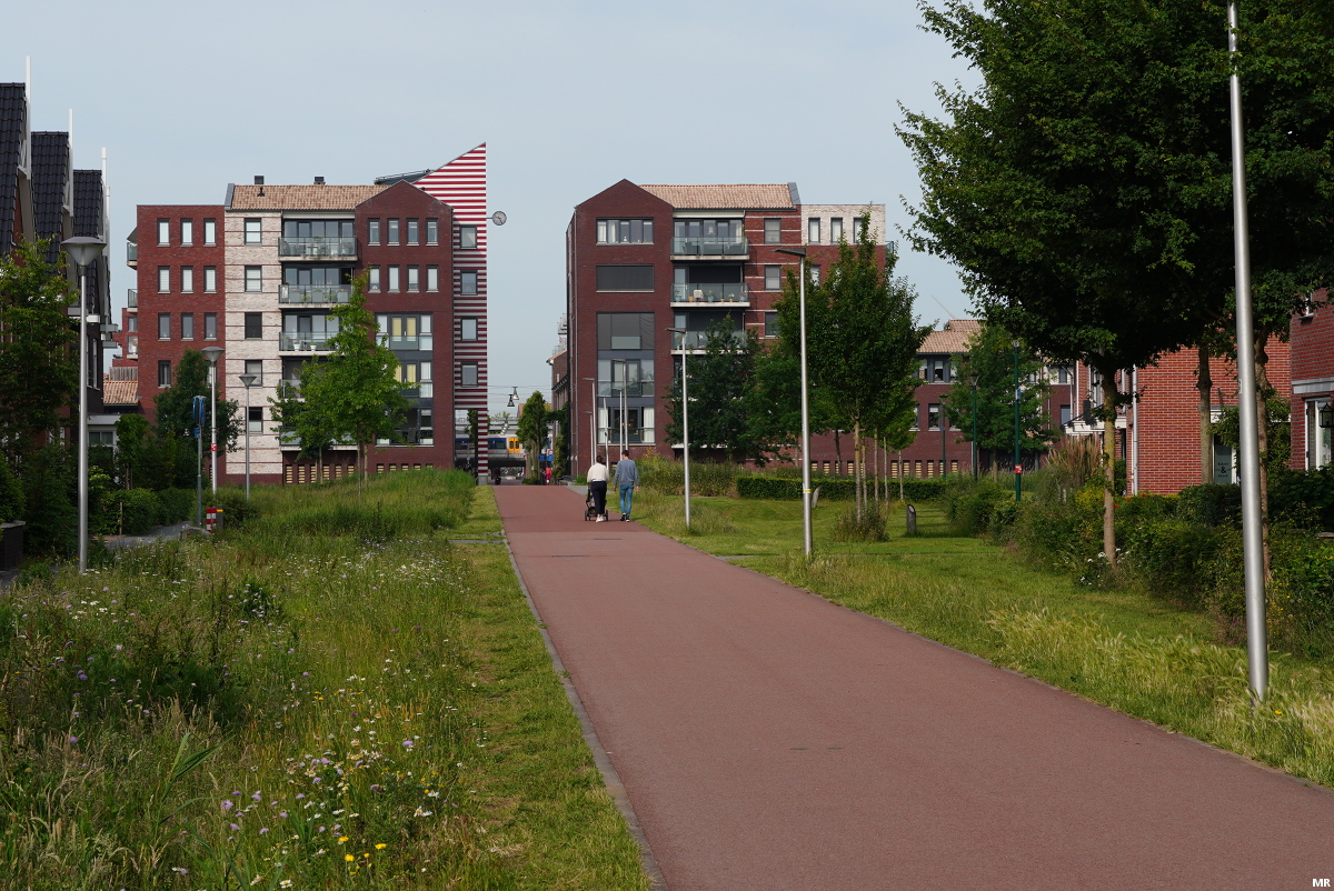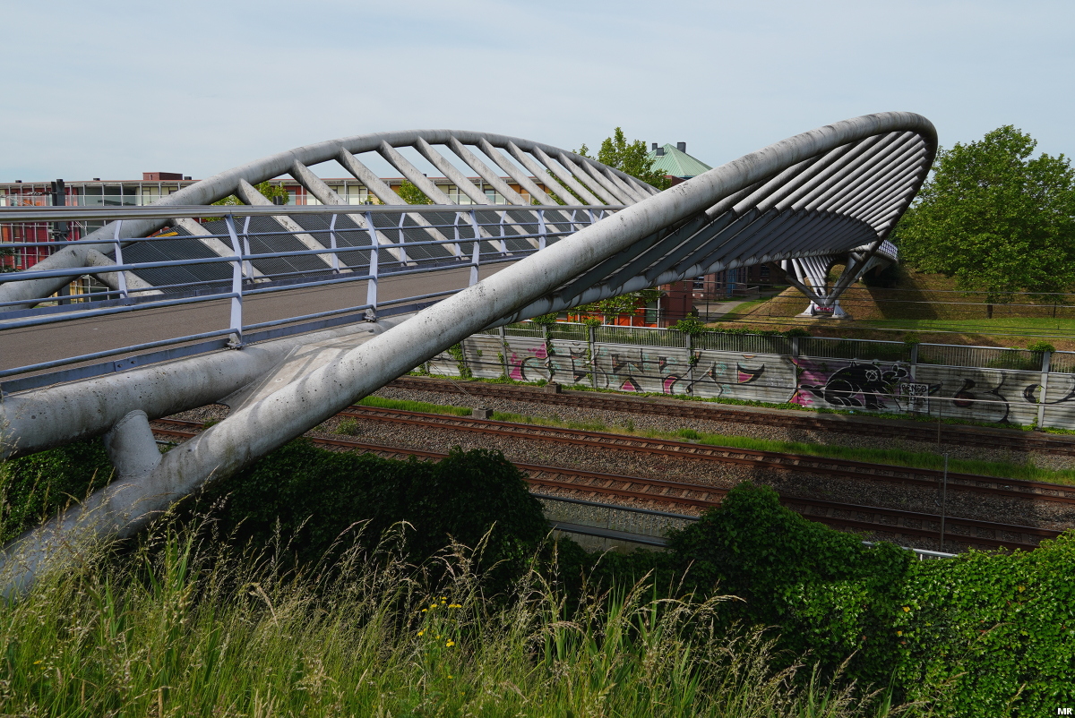 11. De Vijfwalbrug is de enige fietsersbrug over het spoor. Deze brug is in 2009 in zijn geheel aangevoerd over het Amsterdam-Rijnkanaal en met kranen op zijn plek gehesen. De brug ligt enkele meters boven het maaiveld dus de fietsers moeten een kleine klim maken om het spoor te passeren.
