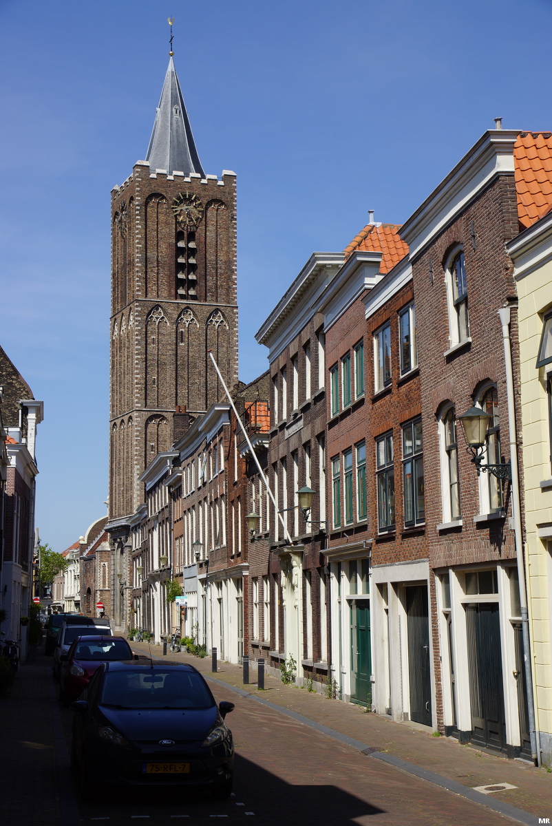46. De Nieuwstraat met aan het einde de 58 meter hoge westtoren van de Grote of Sint Janskerk.