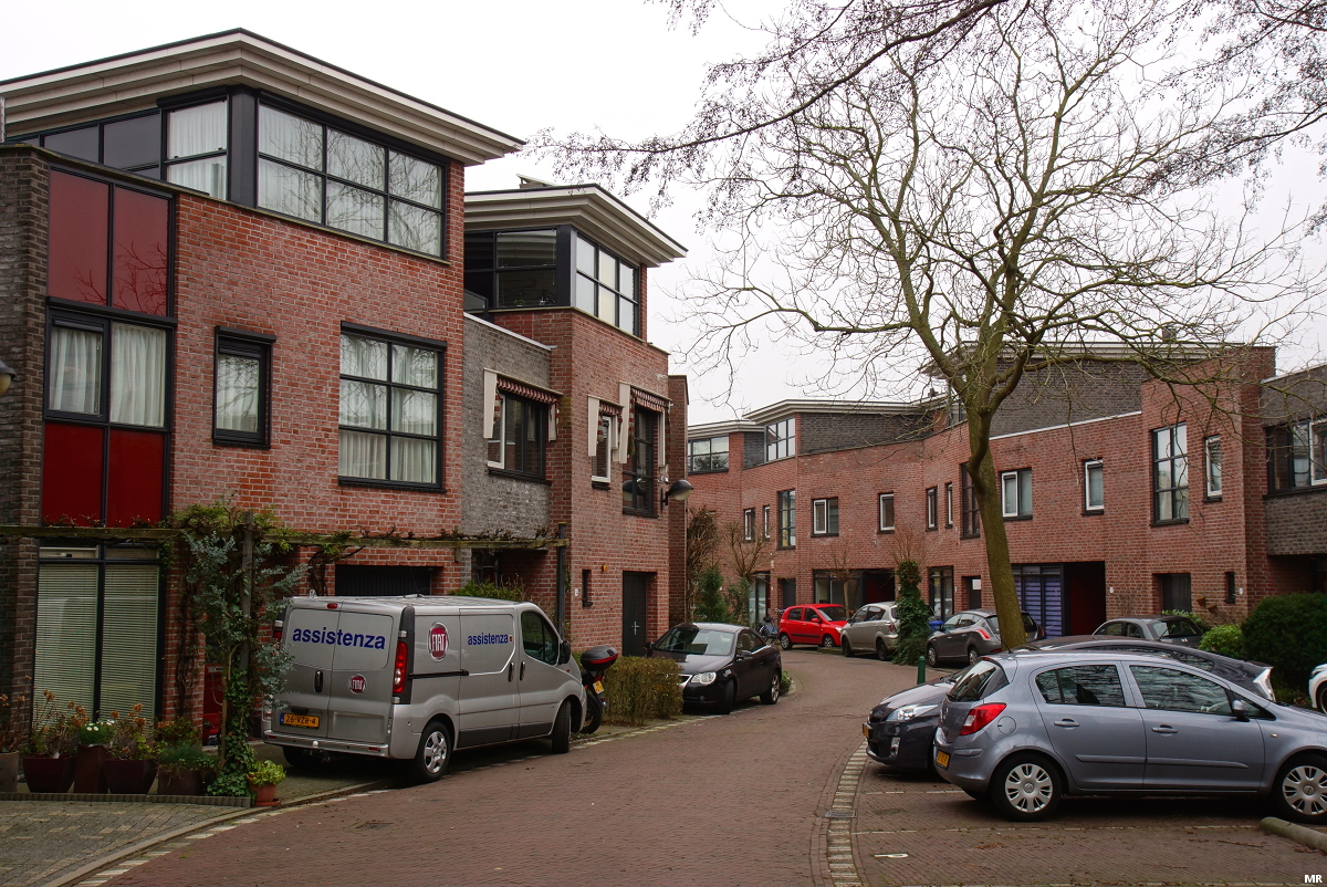 De woningen van Eilandenrijk zijn op een frivole manier geplaatst langs de kronkelende straten in het gebied, waarbij elke woning aan de voorzijde gericht is op de straat en de achterzijde op het water. Door de kronkelingen zijn er nauwelijks zichtassen in het gebied en blijft het spannend wat je aantreft achter de eerstvolgende bocht. Bijna geen voorgevel staat in gelijke hoek met de buren en doordat afwisselend in 2 en 3 lagen is gebouwd ontstaat een gevarieerd straatbeeld. Juist door deze spannende stedenbouwkundige opzet vergeet je haast dat de huizen qua architectuur niet zo bijzonder zijn. Zo is er nagenoeg geen variatie aangebracht in de gevels en is de architectonische detaillering vrij schraal. Aleen de daklijsten op de woningen met derde bouwlaag zijn noemenswaardig. De variatie begint nu pas te ontstaan nu op diverse woningen (uitbreidingen van) dakopbouwen worden geplaatst. Ondanks dat hierbij getracht wordt aan te sluiten bij de rest van de straat zijn toch kleine interpretatieverschillen te ontdekken. Ook zijn sommige bewoners aan het experimenteren met alternatieve kleuren. Zo verft de een zijn kozijnen zeegroen en de ander zijn hele voorgevel wit. Bij een eenvormige rij woningen zijn deze verschillen vaak storend, terwijl ze in dit gebied meer dan welkom zijn. De Dijk Enige rechte lijn in het gebied is van de weg tussen rotonde Schaapweg en appartementencomplex De Cirkel. Vanwege de straatnaam De Dijk lijkt het alsof we hier te maken hebben met een oude dijk, maar die heeft hier nooit gelegen. Vanaf de Siergaarde lijkt het wel op een dijk, al is het maar om het water dat zich aan beide zijden van het fietspad bevindt en de rij bomen. Nu is gekozen voor elzen, maar voor een idyllischer beeld zijn knotwilgen hier meer op hun plek. Bronnen - Bewonersorganisatie De Strijp: https://www.destrijp.net/site/index.php?page=13§ion=4 Gepubliceerd in Rijswijks Dagblad: 25-02-2020