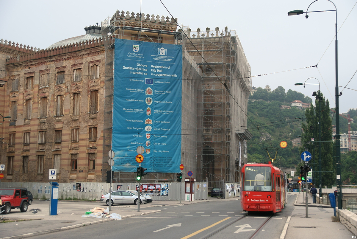 9. In de Bosnische oorlog is het stadhuis compleet uitgebrand. Tegenwoordig wordt het pand weer gerestaureerd.