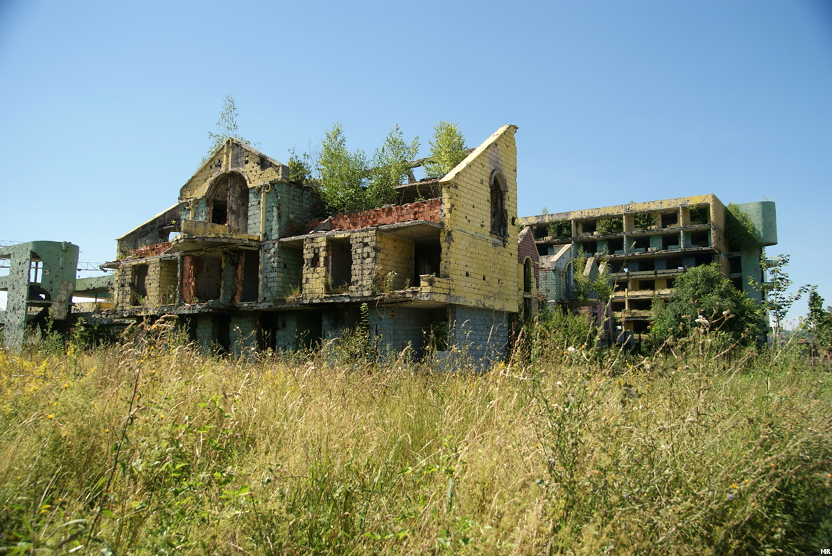 21. Tegenover Oslobodenje is nog wel een oud bejaardentehuis te vinden. Door de vrolijke kleurtjes was dit een gewild doelwit van de aanvallers.