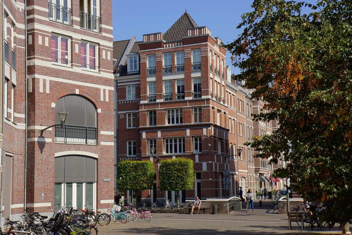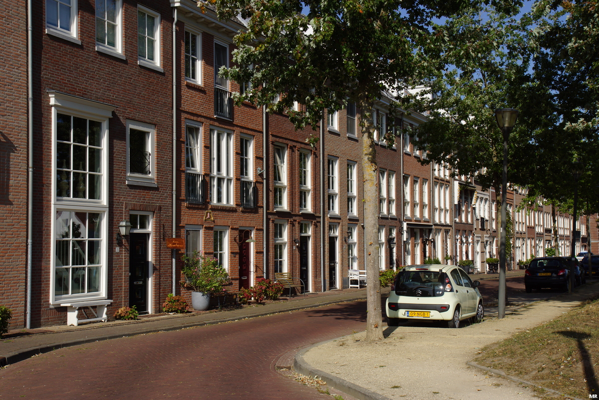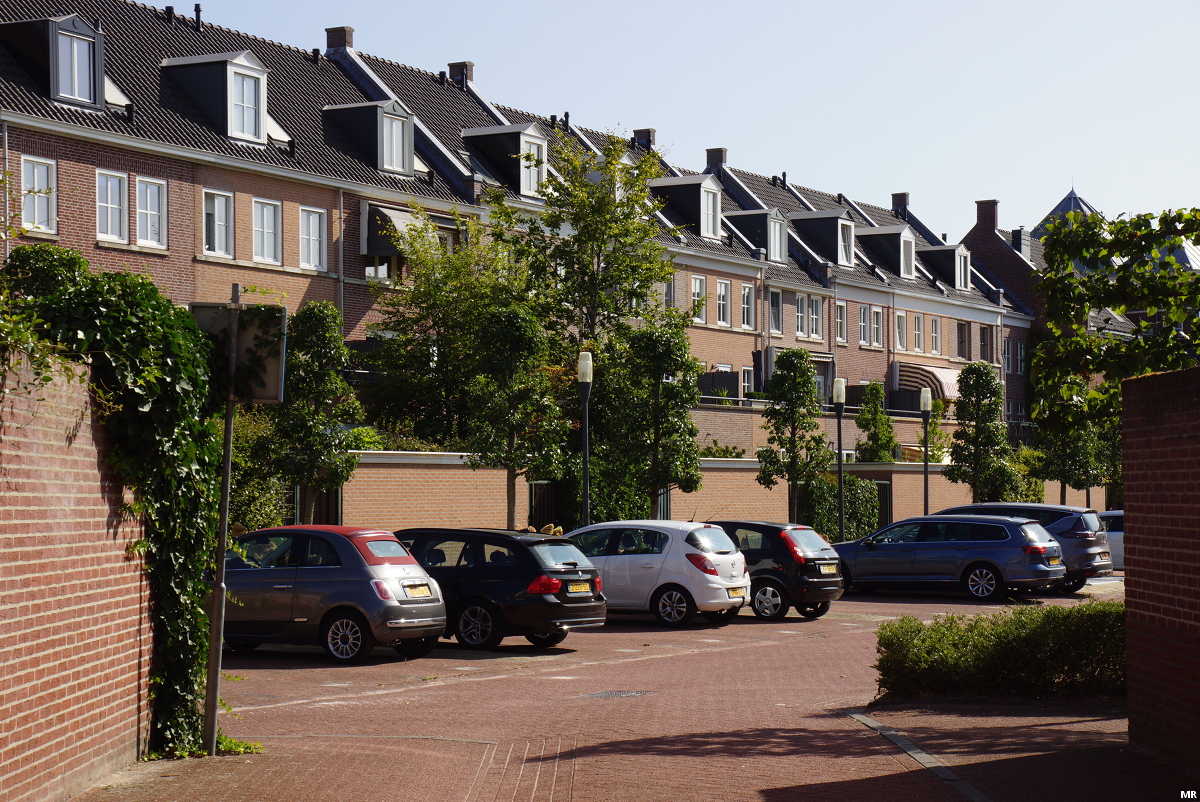15. Auto's worden zoveel mogelijk geweerd uit het straatbeeld. In plaats van parkeren op de straat zijn bewoners aangewezen op parkeerplaatsen in het midden van de bouwblokken. Geheel in stijl zijn deze binnenhoven toegankelijk via historische poortgebouwen, zoals deze aan de Statenlaan.