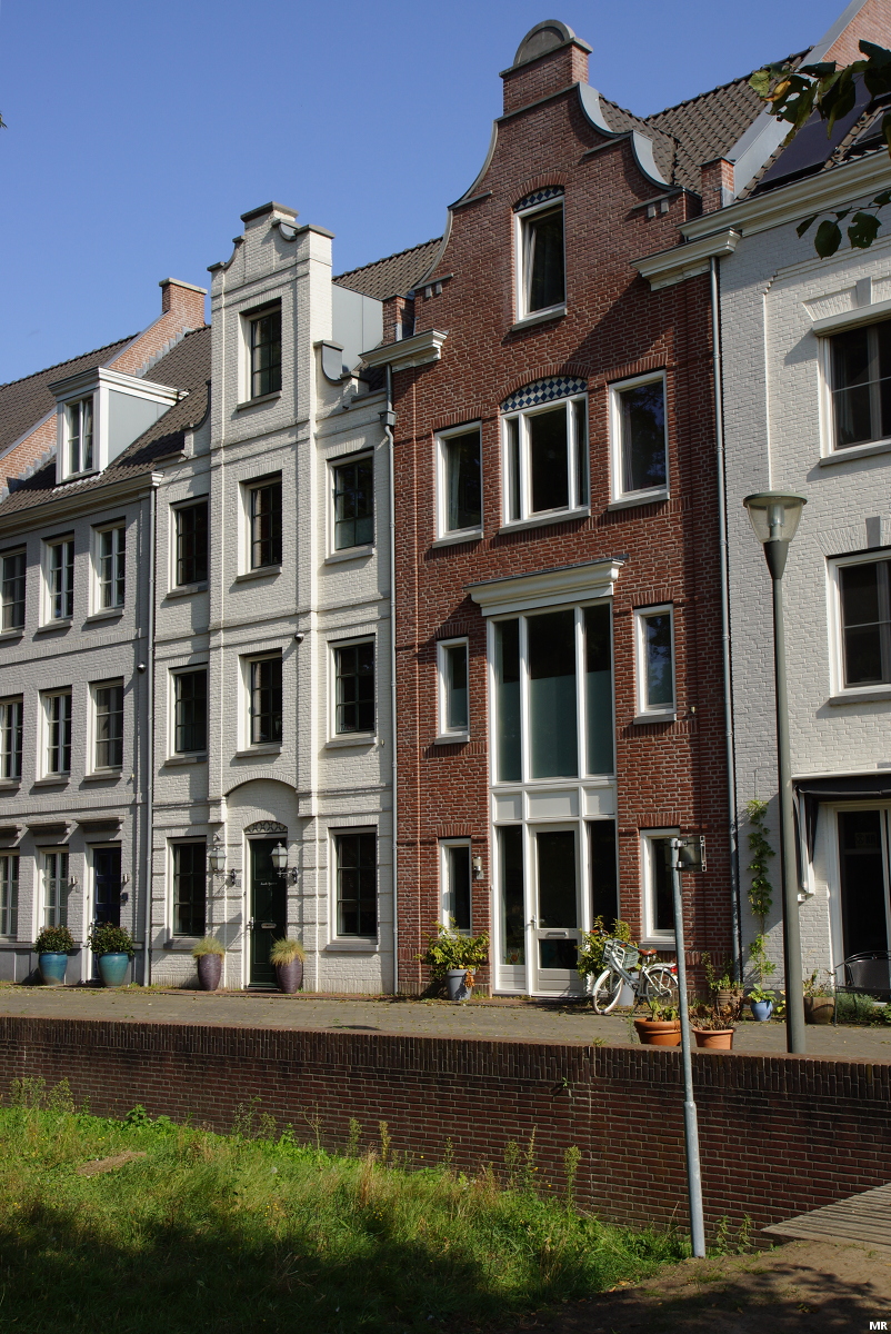 8. Poortgebouw aan de Neerwal. Het gebouw overkluist niet alleen de middellaan, maar ook de gracht.